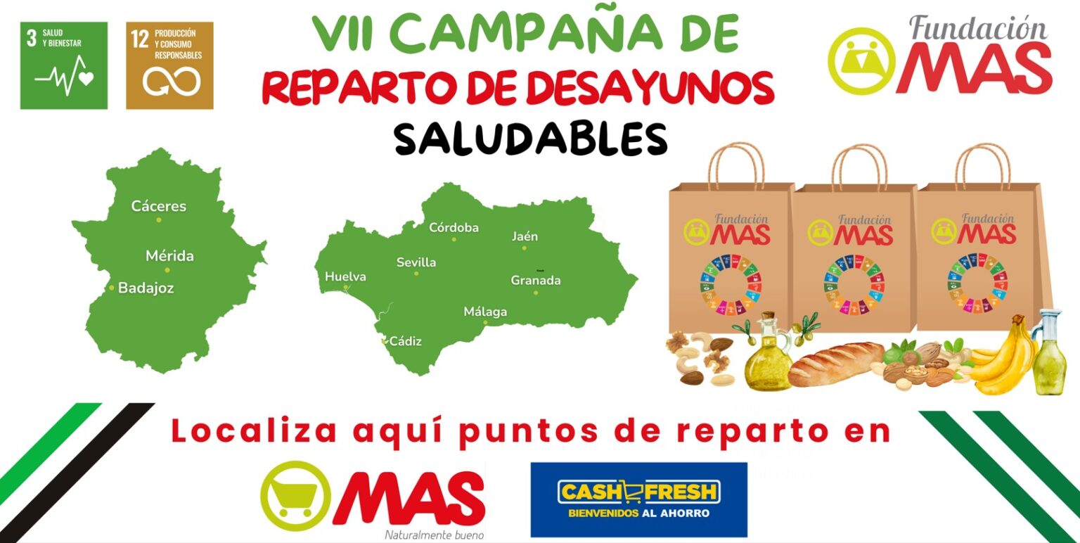 Con este propósito repartiremos, 3.000 desayunos saludables en 30 establecimientos comerciales entre clientes de Supermercados MAS y Cash Fresh de Andalucía y Extremadura.
