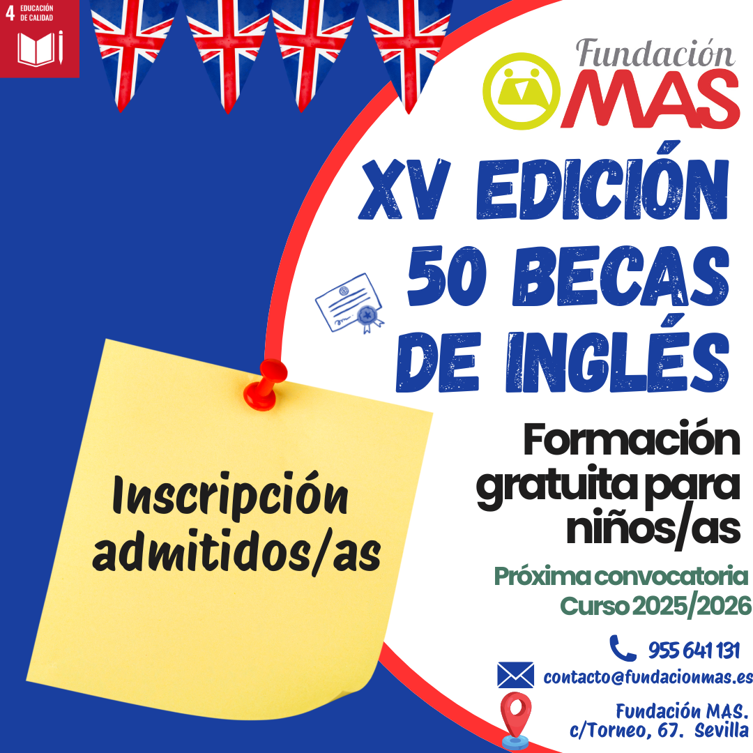 Para completar el proceso de inscripción y como se indica en las bases de la convocatoria (Aparto 5.7) de la XV edición de las Becas de Inglés de Fundación MAS, los tutores del alumnado seleccionado tendrán que formalizar un depósito de 50€ en la cuenta que a tal efecto se le facilitará desde la Fundación MAS, que en caso de asistencia regular y finalización del curso por parte del alumno le será reembolsado completo al finalizar el curso.