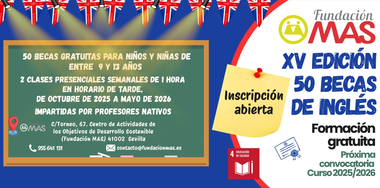 Consulte las bases de la convocatoria aquí.   Características de la convocatoria   Estas becas, gratuitas, son uno de los programas de formación con más andaduras de Fundación MAS y… Seguir leyendo Convocatoria de Becas de Inglés para niños y niñas curso 2025- 2026