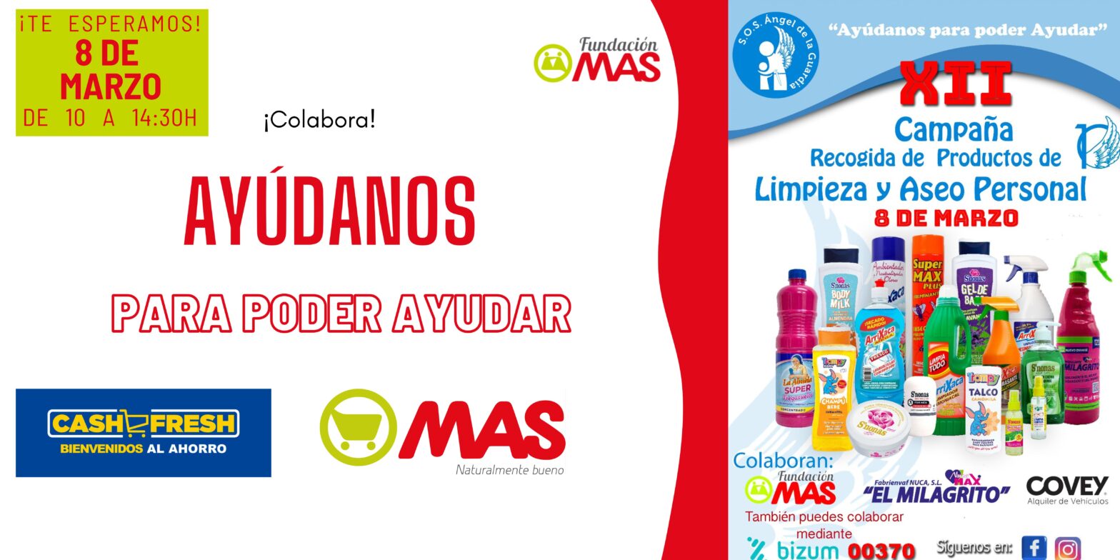 Fundación MAS te invita a realizar tu donación solidaria en la XII Campaña de «Recogida de Productos de Limpieza y Aseo Personal» impulsada por S.O.S. Ángel de la Guardia
